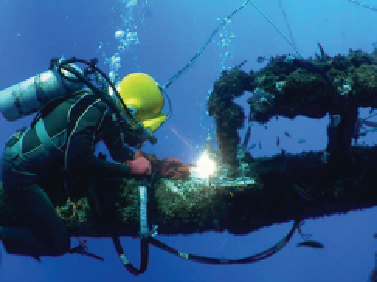 就是利用水下电弧产生的高温和氧气同被切割金属元素产生的化学反应热,加热和熔化被切割金属并借助氧气流的冲力将切割缝中的熔融金属及氧化熔渣吹除,从而形成割缝的。随着水下电弧的不断移动和氧气的不断供给获得所需要的切割长度,达到切断被割金属材料的目的。